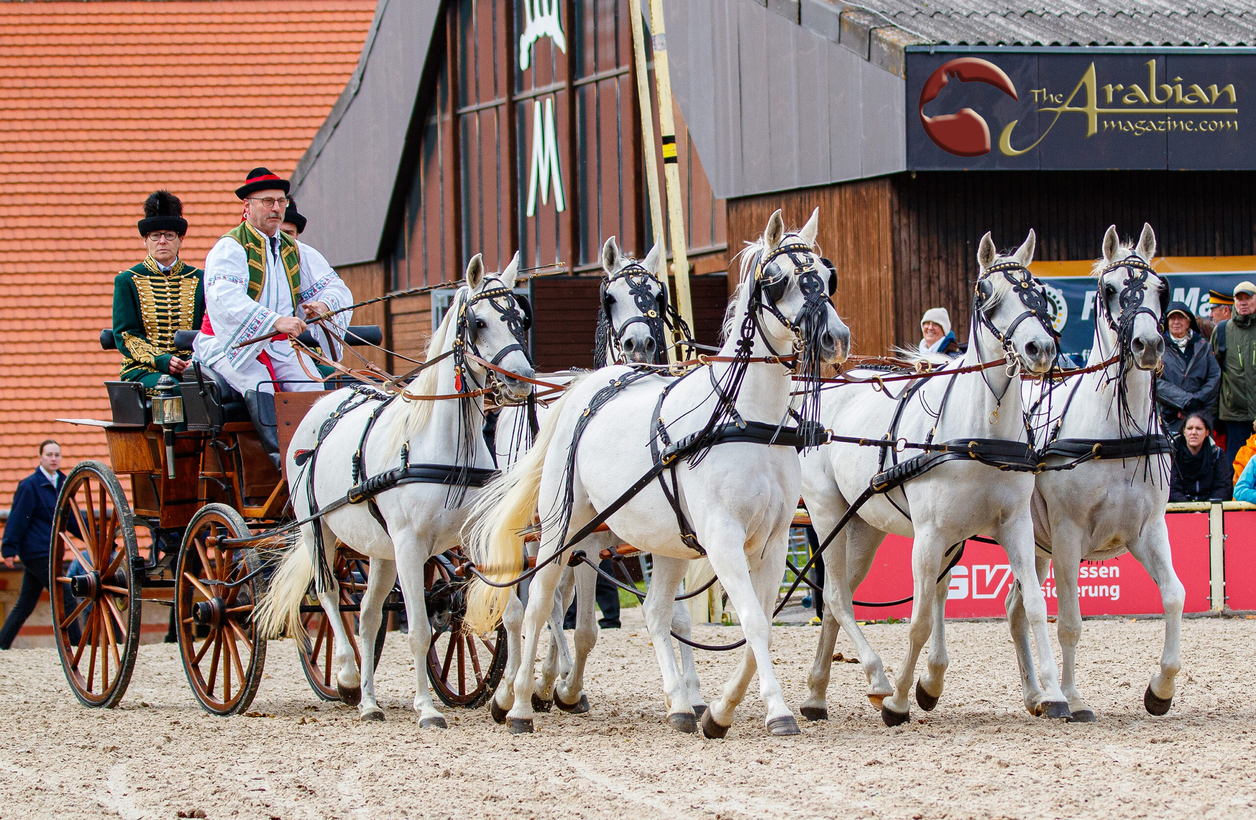 Lead image: traditional five-in-hand of Arabian mares in Hungarian harness in honour of General Tibor von Pettkö-Szandtner, Stud Director of Bábolna and El Zahraa