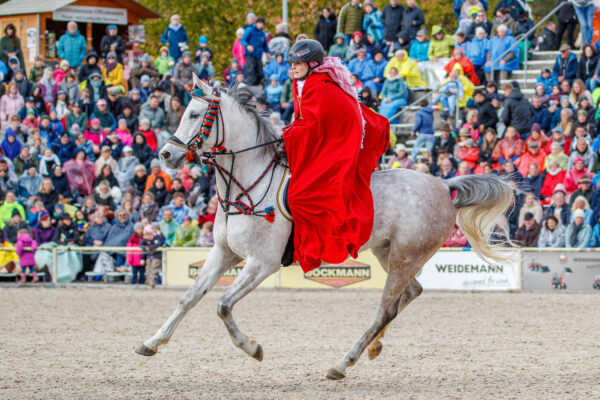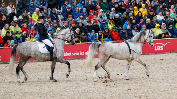 The show itself opened with ministers and other high-ranking civil servants of Baden-Württemberg entering in horse-drawn carriages. One special guest of honour was Duke Wilhelm of Württemberg, a descendant of King Wilhelm I of Württemberg, who began breeding Arabian horses in 1817. This breeding programme was transferred to Marbach in 1932, becoming the foundation of Marbach’s famous Arabian herd.