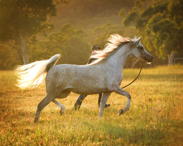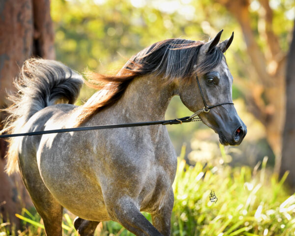 For twenty-five of the other Klass sons, those whose destinies were defined as geldings, the stories of their successes as both show horses and equine athletes serve only to advance the legend of Klass as a sire. An impressive fourteen of these geldings have earned championship honours in the show-ring, many in both halter and performance divisions, as one might expect as direct descendants of the archetypal beautiful athlete. A few of the most accomplished deserve special mention, including Australian National Champions Krusade MI (ex DM Marcedes True Love by RHR Marcedes), Khrome MI (ex Fames Harmony), Kasper MI (ex Chance to Dance), Kourage MI (ex Mustang’s Magnum), Master Klass (ex Mystic Fame by Fame Maker R), Krown MI (ex Love Potion M by Padrons Psyche), and Parlance MI (ex Parada), the last in this no means exhaustive list a three-time successive Australian National Gold Champion who has amassed one of the most impressive show records of any gelding in Australia. Klass’s oldest gelding son, the phenomenally talented Mystere MI (ex Mystic Fame), has been, in true Klass style, a trailblazer in the broader equestrian world around Australia, competing very successfully with his owner/rider Stephanie Debaecker as an open show hunter and ridden hack. His recent outing at the Australasian Arabian International Championships in 2025 resulted in a clean sweep of all divisions entered, finishing as undefeated Gold Champion Ridden Arabian Gelding as well as Arabian Show Hunter in both the open and non-professional divisions. Joining several other Klass sons in endurance, an Olympic discipline in which his descendants continue to thrive and excel, are former Australian National Champion show horses Kane MI (ex Parada) and Archangel MI (ex Mulawa Dark Angel), both of whom are now pursuing endurance careers in the UAE.