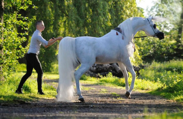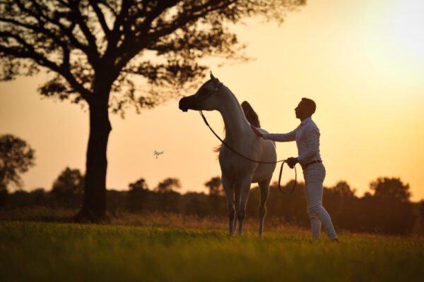 Obsession quickly set in, and when Miles was thirteen, he purchased his first purebred Arabians – EAS Kaabahla (Saaradik x Shahma) and EAS Aamelia (Shah el Zaaman x Saarida Bint Shaliah). A year later and he and Aamelia qualified for the UK International Arabian Horse Show at Towerlands, and Miles’ path as an Arabian horse trainer of the future was truly set.