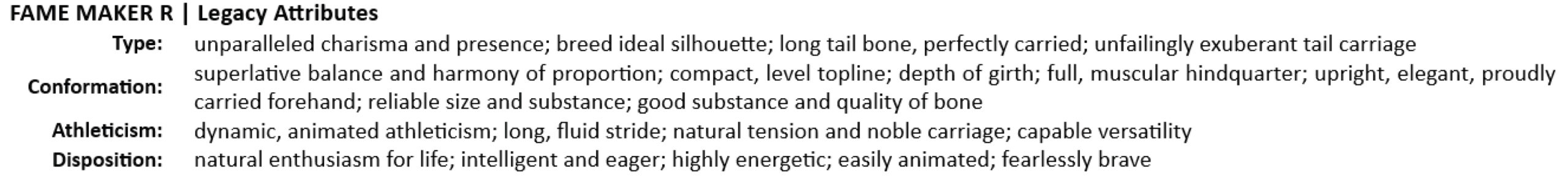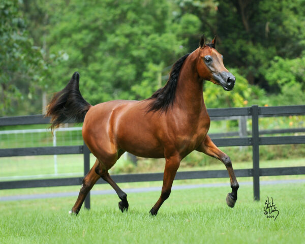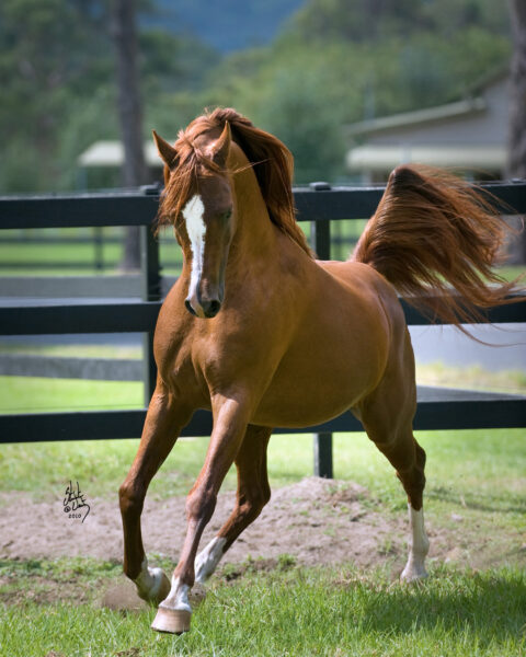 Prodigiously prepotent, Fame Maker stamped his get with his pleasing phenotype with reassuring consistency. Routinely tall and exceptionally complete, the Fame Maker progeny exemplified symmetry, structural integrity and elegance in perfect proportion, exuding type, charisma and self-assuredness in spades. Almost all were further blessed with his phenomenal movement, which never failed to manifest as excellence both in hand and under saddle across a wide variety of versatile equine disciplines. Whenever a long tail bone, perfectly shaped and proudly carried with just the slightest provocation, is spotted on a Mulawa Arabian, one can almost guarantee that Fame Maker is the source.